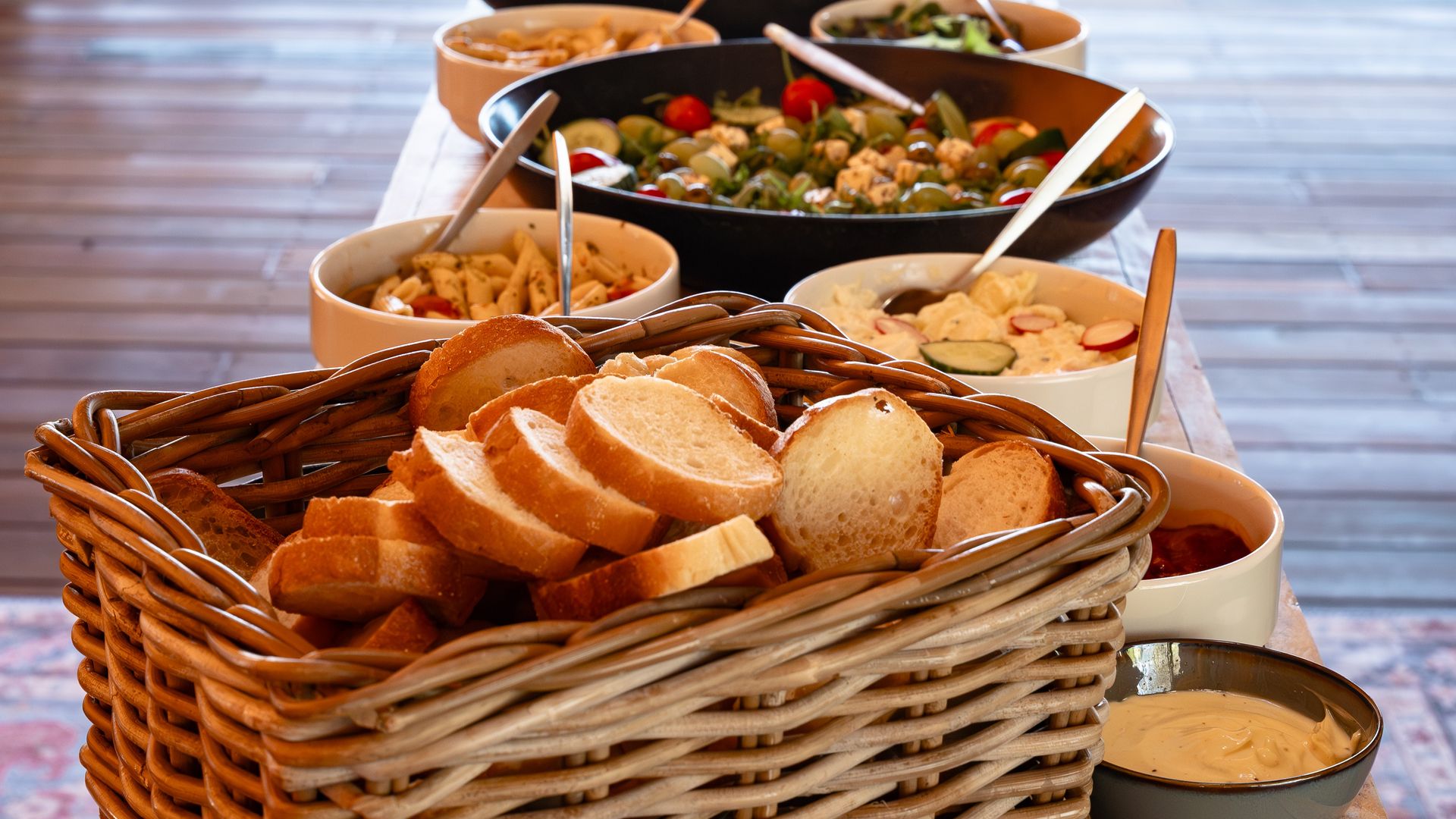 • Diverse salades, stokbrood met kruidenboter & BBQ sausjes.
